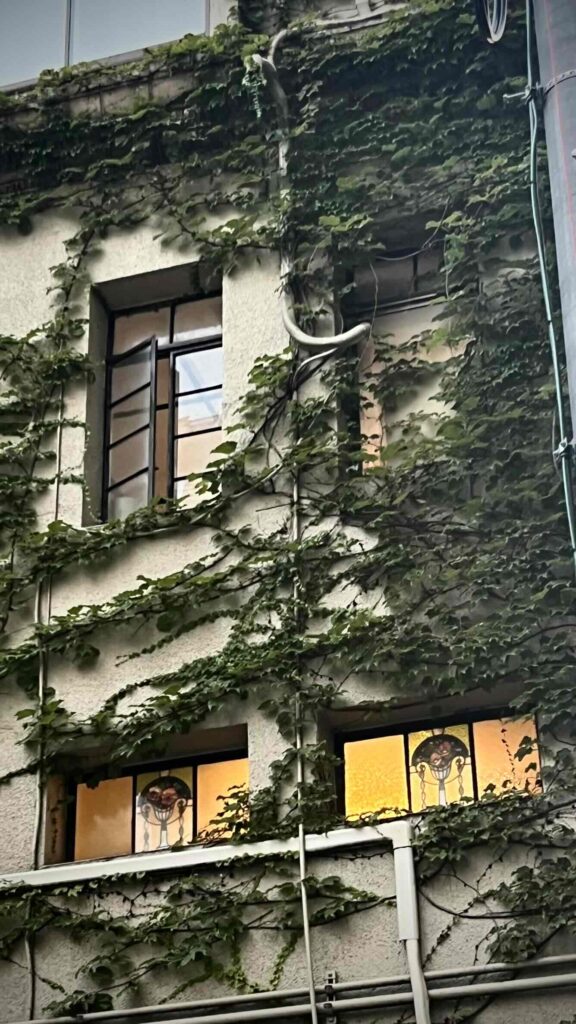 青山ビルは1921(大正10)年に個人邸として竣工したスパニッシュ風建築の洋館。GHQ将校の施設などを経て、現在「生きた建築ミュージアムフェスティバル」の対象建築としても常連で、国登録有形文化財指定・大阪市景観資源登録もされている、魅力的なディティールが残る建築です。