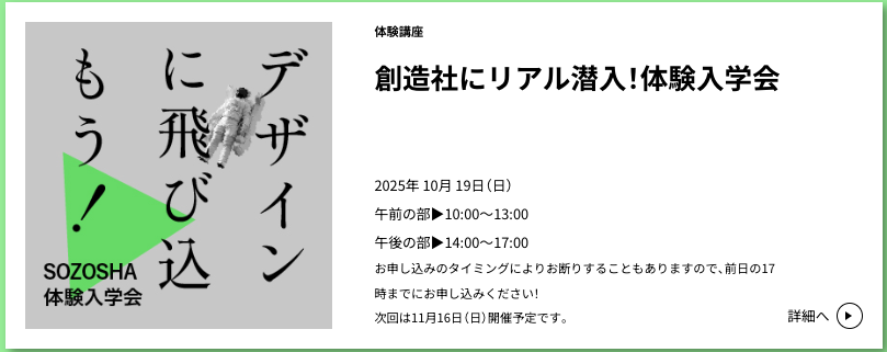 創造社デザイン専門学校 入学相談センター : 06-6459-6211 info@sozosha.ac.jp