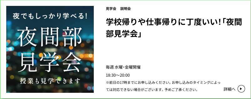 ↑Wスクールや仕事を続けならがスキルアップには夜間部でしょう