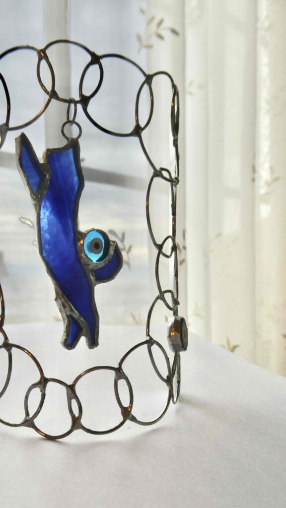 今回は通常のプリントラベルデザインに加えて、リアルなアナログのアート作品が加わり、それぞれ個性あふれる作品展。北山先生は好評いただいているネコの立ち姿にオーストラリアで求めた貴重な素材も含めた「まぼろしのブルーキャット」と題した作品を出展されてます。ファイナルパーティーは先生も出席予定です。