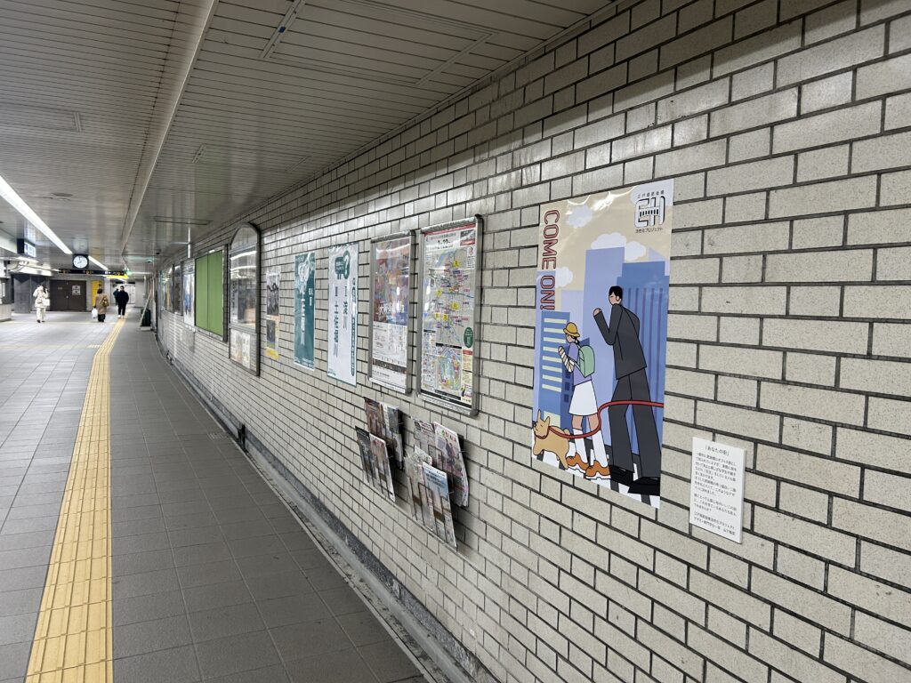 2月初旬から、授業で各自がデザインしたポスターを実際に肥後橋駅構内で掲示させていただきました。