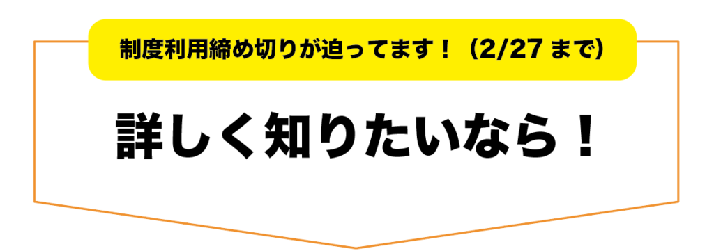 今年度の申請締め切りは、2026年2月27日(金)!申請終了時期の2月は毎年すごく混むので、忙しい人は特に早めに申請を済ませることをお勧めします。