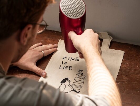 卒業生による卒業生が制作したZINEの即売会と卒業生がZINEフェスのためにデザインしたオリジナルデザインでシルクスクリーンを使った簡単トートバッグ制作体験会を開催します。