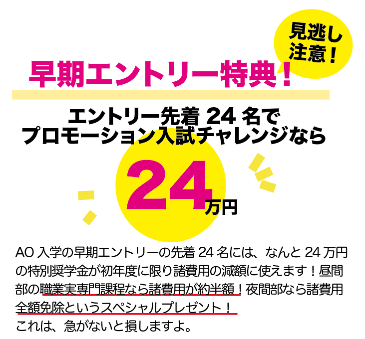 早期AO入学者だけのスペシャル特典だから、しっかり対策して早めのエントリーを目指そう!!