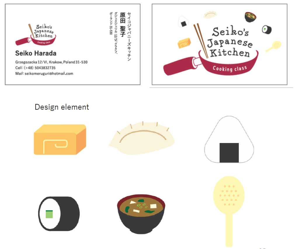 ポーランド在住の日本人が立ち上げた「和食料理」食材と道具を組み合わせ料理教室を展開。この料理教室のVI提案